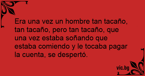 Era una vez un hombre tan tacaño, tan tacaño, pero tan tacaño, que una vez estaba soñando que estaba comiendo y le tocaba pagar la cuenta, se despertó.