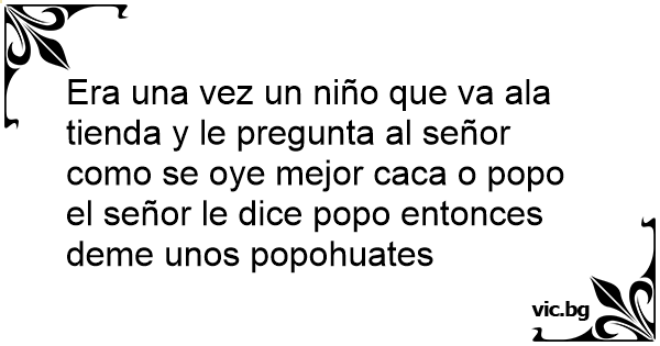 Era una vez un niño que va ala tienda y le pregunta al señor como se oye mejor саса o popo el señor le dice popo entonces deme unos popohuates
