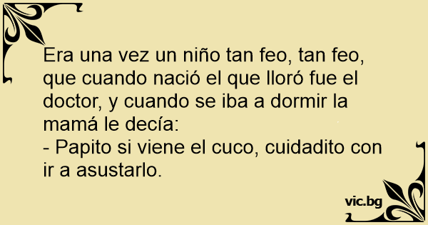 Era una vez un niño tan feo, tan feo, que cuando nació el que lloró fue el doctor, y cuando se iba a dormir la mamá le decía: