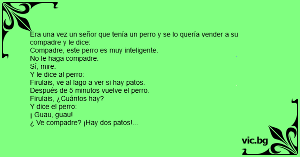 Era una vez un señor que tenía un реrrо y se lo quería vender a su compadre y le dice: