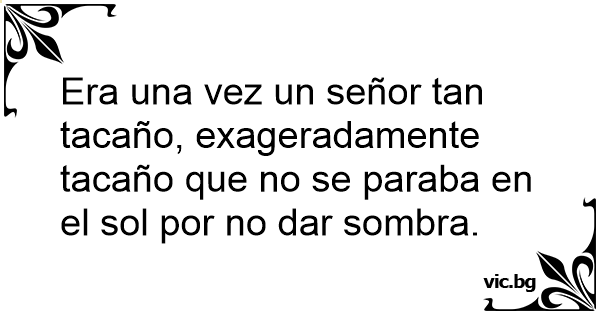 Era una vez un señor tan tacaño, exageradamente tacaño que no se paraba en el sol por no dar sombra.
