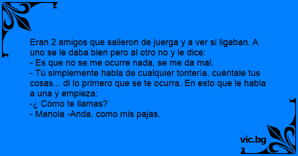 Eran 2 amigos que salieron de juerga y a ver si ligaban. A uno se le daba bien pero al otro no y le dice: