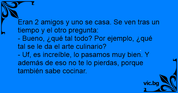 Eran 2 amigos y uno se casa. Se ven tras un tiempo y el otro pregunta: