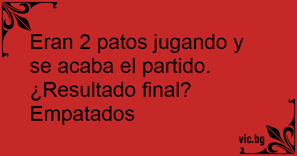 Eran 2 patos jugando y se acaba el partido. ¿Resultado final? Empatados