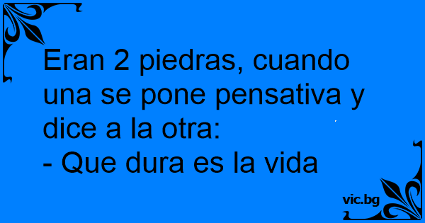 Eran 2 piedras, cuando una se pone pensativa y dice a la otra: