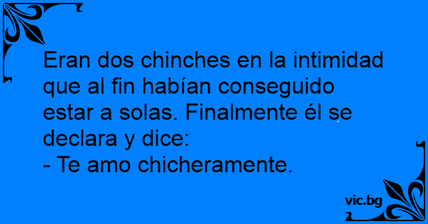 Eran dos chinches en la intimidad que al fin habían conseguido estar a solas. Finalmente él se declara y dice:
