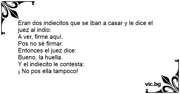 Eran dos indiecitos que se iban a casar y le dice el juez al indio: