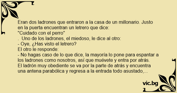 Eran dos ladrones que entraron a la casa de un millonario. Justo en la puerta encuentran un letrero que dice: