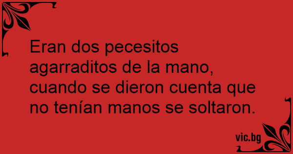 Eran dos pecesitos agarraditos de la mano, cuando se dieron cuenta que no tenían manos se soltaron.