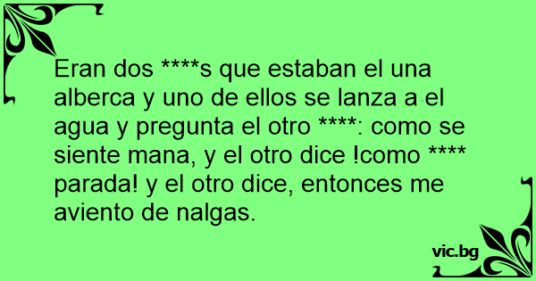 Eran dos ****s que estaban el una alberca y uno de ellos se lanza a el agua y pregunta el otro ****: como se siente mana, y el otro dice !como **** parada! y el otro dice, entonces me aviento de nalgas.