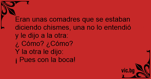 Eran unas comadres que se estaban diciendo chismes, una no lo entendió y le dijo a la otra: