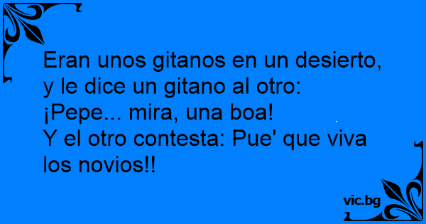 Eran unos gitanos en un desierto, y le dice un gitano al otro: ¡Pepe... mira, una boa!