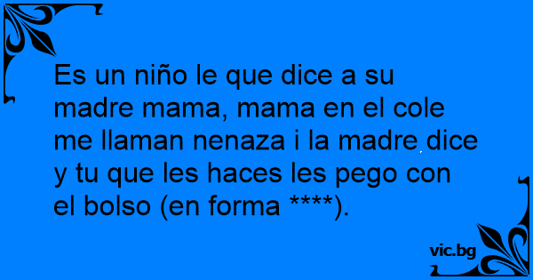 Es un niño le que dice a su madre mama, mama en el cole me llaman nenaza i la madre dice y tu que les haces les pego соn el bolso (en forma ****).