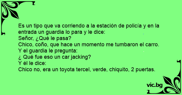 Es un tipo que va corriendo a la estación de policía y en la entrada un guardia lo para y le dice: