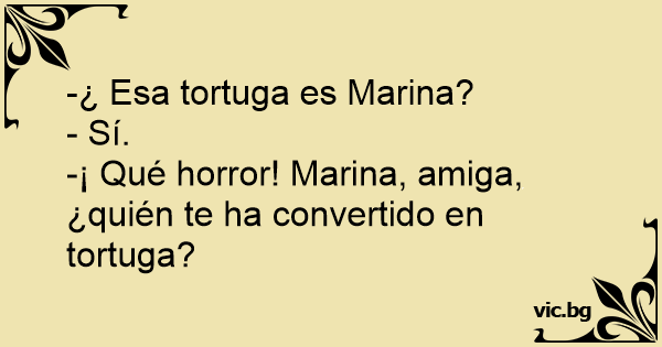 -¡ Qué horror! Marina, amiga, ¿quién te ha convertido en tortuga?