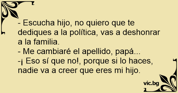 - Escucha hijo, no quiero que te dediques a la política, vas a deshonrar a la familia.
