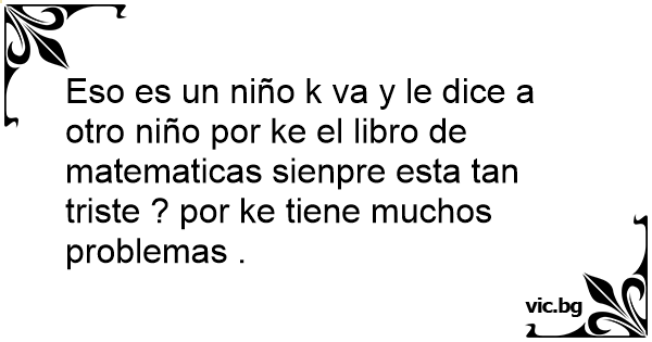 Eso es un niño k va y le dice a otro niño por ke el libro de matematicas sienpre esta tan triste ? por ke tiene muchos problemas .