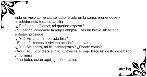 - Aquí, aquí -contesta el hijo. Entonces el viejo hace un gesto de enfado y murmura: