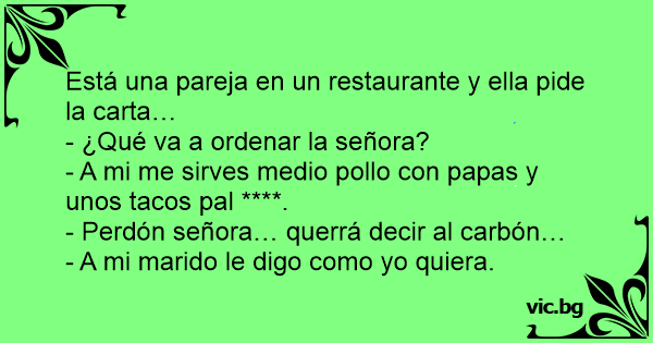 Está una pareja en un restaurante y ella pide la carta…