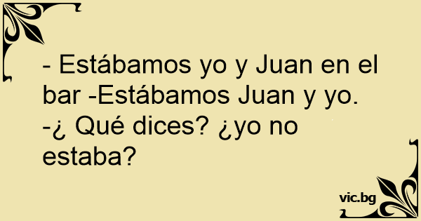 - Estábamos yo y Juan en el bar -Estábamos Juan y yo.