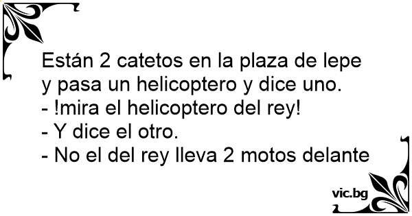 Están 2 catetos en la plaza de lepe y pasa un helicoptero y dice uno.