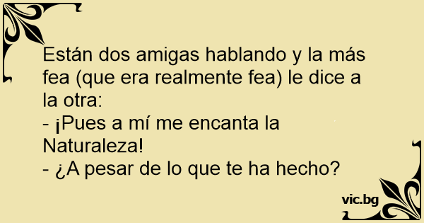 Están dos amigas hablando y la más fea (que era realmente fea) le dice a la otra: