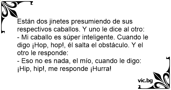 Están dos jinetes presumiendo de sus respectivos caballos. Y uno le dice al otro: