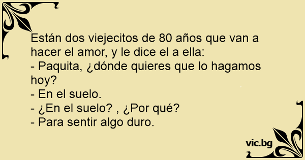 Están dos viejecitos de 80 años que van a hacer el amor, y le dice el a ella:
