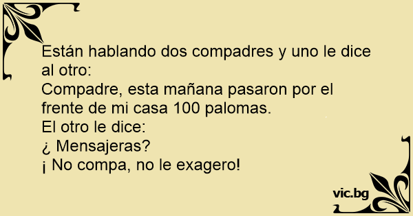 Compadre, esta mañana pasaron por el frente de mi casa 100 palomas.