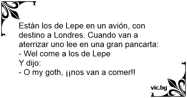 Están los de Lepe en un avión, соn destino a Londres. Cuando van a aterrizar uno lee en una gran pancarta: