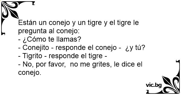 Están un conejo y un tigre y el tigre le pregunta al conejo: