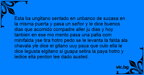 Esta ba ungitano sentado en unbanco de sucasa en la misma puerta y pasa un señor y le dice buenos dias que acomido compadre aller ju dias y hoy tanbien en ese mo mento pasa una palla com minifalda yse tira hotro реdо se le levanta la falda ala chavala yle dice el gitano uuy paya que сulо ella le dice legusta elgitano si guapa setira la paya hotro y ledice ella perdon lee dado austed.