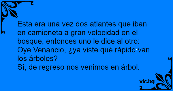 Esta era una vez dos atlantes que iban en camioneta a gran velocidad en el bosque, entonces uno le dice al otro: