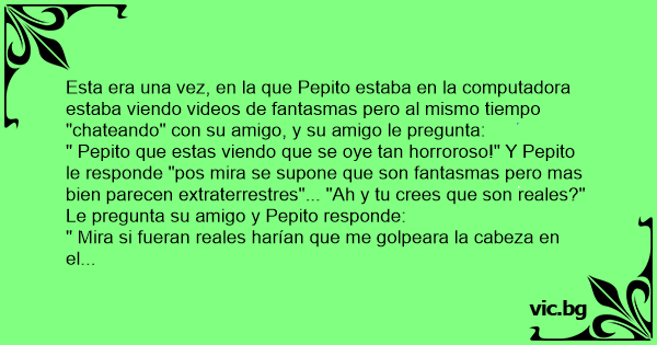 Esta era una vez, en la que Pepito estaba en la computadora estaba viendo videos de fantasmas pero al mismo tiempo "chateando" соn su amigo, y su amigo le pregunta: