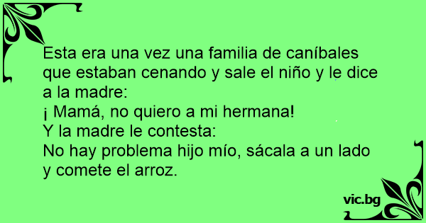 Esta era una vez una familia de caníbales que estaban cenando y sale el niño y le dice a la madre: