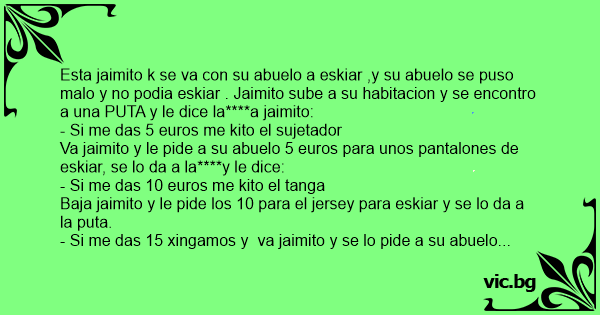 Va jaimito y le pide a su abuelo 5 euros para unos pantalones de eskiar, se lo da a la****y le dice: