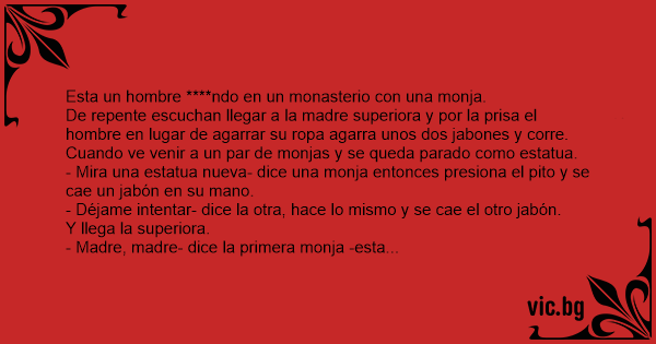 - Mira una estatua nueva- dice una monja entonces presiona el pito y se cae un jabón en su mano.