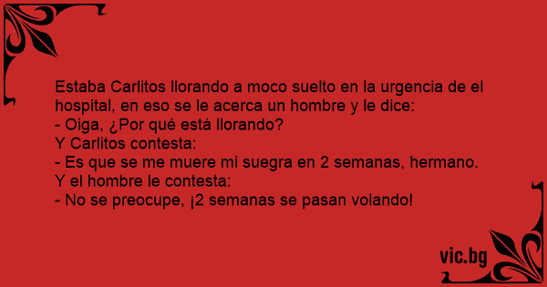 Estaba Carlitos llorando a moco suelto en la urgencia de el hospital, en eso se le acerca un hombre y le dice: