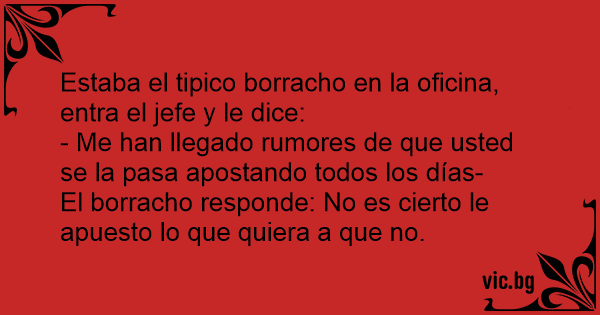 El borracho responde: No es cierto le apuesto lo que quiera a que no.