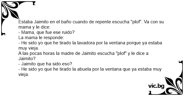 A las pocas horas la madre de Jaimito escucha "plof" y le dice a Jaimito?