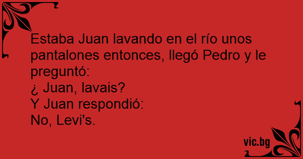 Estaba Juan lavando en el río unos pantalones entonces, llegó Pedro y le preguntó: