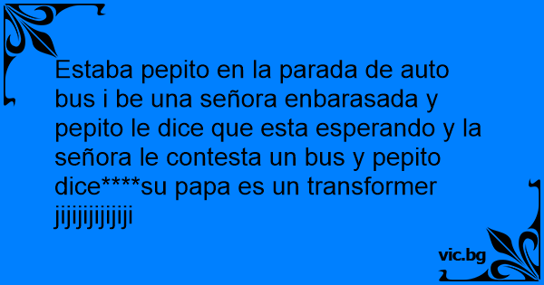 Estaba pepito en la parada de auto bus i be una señora enbarasada y pepito le dice que esta esperando y la señora le contesta un bus y pepito dice****su papa es un transformer jijijijijijiji