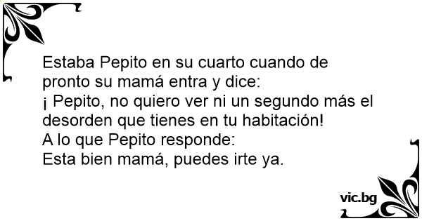 Estaba Pepito en su cuarto cuando de pronto su mamá entra y dice:
