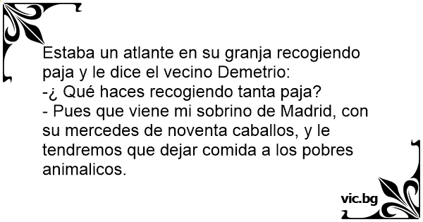 Estaba un atlante en su granja recogiendo paja y le dice el vecino Demetrio: