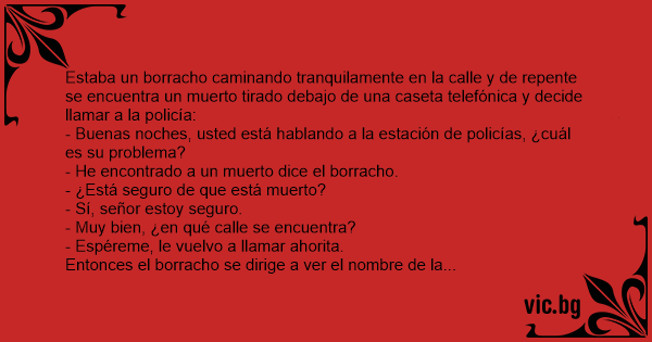 Entonces el borracho se dirige a ver el nombre de la calle y apresurado regresa al teléfono y vuelve a marcar.