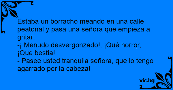 Estaba un borracho meando en una calle peatonal y pasa una señora que empieza a gritar: