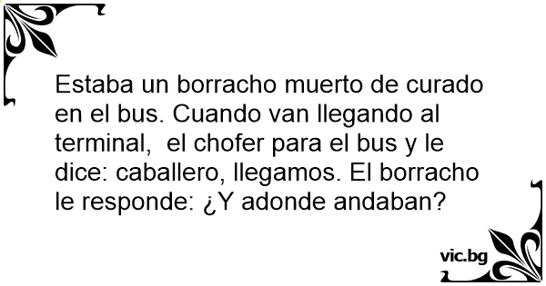Estaba un borracho muerto de curado en el bus. Cuando van llegando al terminal, el chofer para el bus y le dice: caballero, llegamos. El borracho le responde: ¿Y adonde andaban?
