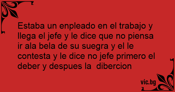 Estaba un enpleado en el trabajo y llega el jefe y le dice que no piensa ir ala bela de su suegra y el le contesta y le dice no jefe primero el deber y despues la dibercion