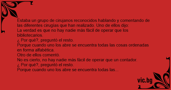 Estaba un grupo de cirujanos reconocidos hablando y comentando de las diferentes cirugías que han realizado. Uno de ellos dijo: