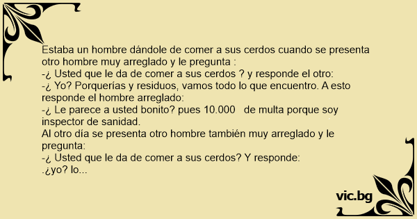 Estaba un hombre dándole de comer a sus cerdos cuando se presenta otro hombre muy arreglado y le pregunta :